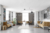 Zdjęcie "Nowoczesne wnętrze. Pomysł 3d renderowania" może być wykorzystywane do celów osobistych i komercyjnych zgodnie z warunkami zakupionej licencji Royalty-free. Obraz jest dostępny do pobrania w jakości wysokiej rozdzielczości do 5760x3840.