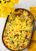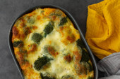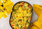 Pyszne zdrowe ciasto warzywne z brokułami i kalafiorem, pomidorami, słodką papryką i serem w talerzu