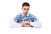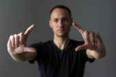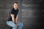Portret dorosłego mężczyzny w niebieskiej koszulce