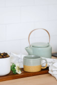 Zdjęcie "Naturalna herbata rooibos, napój organiczny, detox lub utrata masy ciała koncepcji napojów. Stół kuchenny z czajniczek, kubek i organizer pudełko lub pojemnik na zioła. Cieszący się porankiem w domu" może być wykorzystywane do celów osobistych i komercyjnych zgodnie z warunkami zakupionej licencji Royalty-free. Obraz jest dostępny do pobrania w jakości wysokiej rozdzielczości do 5760x3840.