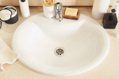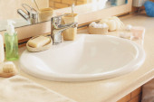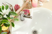 Nowoczesny umywalka i różne materiały do kąpieli na stole