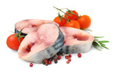 Tłuszcz wieprzowy z pieprzem i koper na białym tle