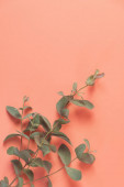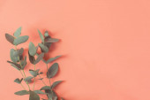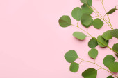 Widok z góry zdjęcie gałęzi eukaliptusa w rogach na odizolowanym pastelowym różowym tle z przestrzenią do kopiowania