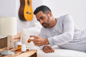 Zdjęcie "Mężczyzna źle się czuje i bierze tabletki." może być wykorzystywane do celów osobistych i komercyjnych zgodnie z warunkami zakupionej licencji Royalty-free. Obraz jest dostępny do pobrania w jakości wysokiej rozdzielczości do 5760x3840.