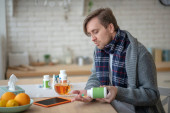 Zdjęcie "Mężczyzna źle się czuje i bierze tabletki." może być wykorzystywane do celów osobistych i komercyjnych zgodnie z warunkami zakupionej licencji Royalty-free. Obraz jest dostępny do pobrania w jakości wysokiej rozdzielczości do 5760x3840.