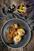 Zdjęcie "Schab z grilla z cebulą i pieczarkami, podawany z tłuczonymi ziemniakami." może być wykorzystywane do celów osobistych i komercyjnych zgodnie z warunkami zakupionej licencji Royalty-free. Obraz jest dostępny do pobrania w jakości wysokiej rozdzielczości do 5760x3840.