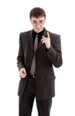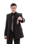 młody człowiek w garniturze, subskrypcja akcji klucze.