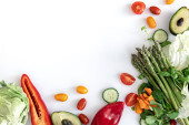 Płaskowyż, warzywa na białym tle, koncepcja żywności i diety.