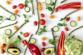 Płaskowyż, warzywa na białym tle, koncepcja żywności i diety.