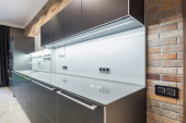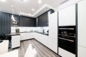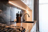Zdjęcie "poczta nowa kuchnia z ciemnym blatem i zlewem czarnej wody" może być wykorzystywane do celów osobistych i komercyjnych zgodnie z warunkami zakupionej licencji Royalty-free. Obraz jest dostępny do pobrania w jakości wysokiej rozdzielczości do 5760x3840.