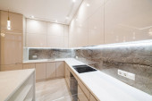 poczta nowa kuchnia z ciemnym blatem i zlewem czarnej wody