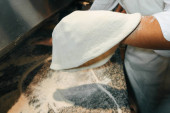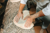 Zamknij zdjęcie szefa kuchni przygotowującego ciasto na makaron carbonara.