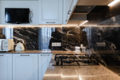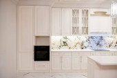 Zdjęcie "Kuchnia z białymi fasadami i czarną osą" może być wykorzystywane do celów osobistych i komercyjnych zgodnie z warunkami zakupionej licencji Royalty-free. Obraz jest dostępny do pobrania w jakości wysokiej rozdzielczości do 5760x3840.