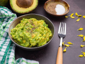 Zdjęcie "Organiczne awokado z nasionami, połówkami awokado i świeżym guacamole w misce na czarnej płycie z tkaniną i sztućcami na marmurowym tle. Widok góry. Miejsce na tekst. Pojęcie zdrowych owoców." może być wykorzystywane do celów osobistych i komercyjnych zgodnie z warunkami zakupionej licencji Royalty-free. Obraz jest dostępny do pobrania w jakości wysokiej rozdzielczości do 5760x3840.