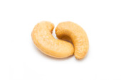 Pieczone orzechy nerkowca izolowane na białym tle.Zdrowa żywność i koncepcje odchudzania