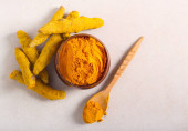 Zdjęcie "kurkuma w proszku w łyżce z korzeniem kurkumy. kurkuma lub kurkumina na konkretnym tle. Przyprawa, naturalne zabarwienie, medycyna alternatywna. Długi sztandar. widok z góry." może być wykorzystywane do celów osobistych i komercyjnych zgodnie z warunkami zakupionej licencji Royalty-free. Obraz jest dostępny do pobrania w jakości wysokiej rozdzielczości do 5760x3840.