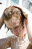 dziecko ma orzeźwiający prysznic