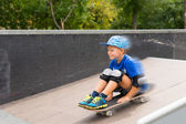 chłopiec jeździ skuterem w halfpipe