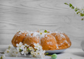Zdjęcie "Choux Bułeczki z bitą śmietaną i cukrem w proszku na górze. Choux ciasto deser. Francuskie ptysie" może być wykorzystywane do celów osobistych i komercyjnych zgodnie z warunkami zakupionej licencji Royalty-free. Obraz jest dostępny do pobrania w jakości wysokiej rozdzielczości do 5760x3840.