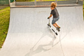 chłopiec jeździ skuterem w halfpipe