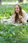 Zdjęcie "wesoła kobieta w okularach rozmawia na smartfonie siedząc na kratkę" może być wykorzystywane do celów osobistych i komercyjnych zgodnie z warunkami zakupionej licencji Royalty-free. Obraz jest dostępny do pobrania w jakości wysokiej rozdzielczości do 5760x3840.