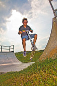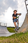 Zdjęcie "chłopiec jeździ skuterem w halfpipe" może być wykorzystywane do celów osobistych i komercyjnych zgodnie z warunkami zakupionej licencji Royalty-free. Obraz jest dostępny do pobrania w jakości wysokiej rozdzielczości do 5760x3840.