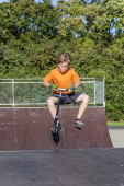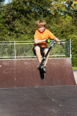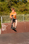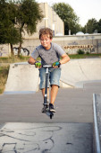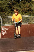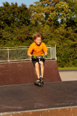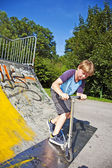 chłopiec jeździ skuterem w skate parku