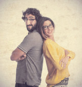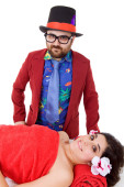 50-letnia para pozuje przed fotografem w wyniosły sposób godny angielskich lordów. Białe tło