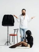 Zdjęcie "50-letnia para pozuje przed fotografem w wyniosły sposób godny angielskich lordów. Białe tło" może być wykorzystywane do celów osobistych i komercyjnych zgodnie z warunkami zakupionej licencji Royalty-free. Obraz jest dostępny do pobrania w jakości wysokiej rozdzielczości do 5760x3840.