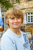 Zdjęcie "portret szczęśliwy uśmiechający się chłopak siedzi w restaurację na świeżym powietrzu" może być wykorzystywane do celów osobistych i komercyjnych zgodnie z warunkami zakupionej licencji Royalty-free. Obraz jest dostępny do pobrania w jakości wysokiej rozdzielczości do 5760x3840.