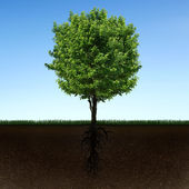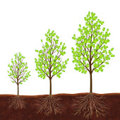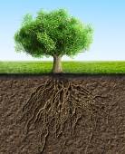 Koncepcyjna ilustracja. Wielkie drzewo z małych korzenie i drzewko z dużych korzeni