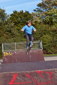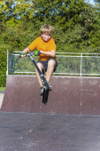 Zdjęcie "dziecko będzie w powietrzu z jego skuter" może być wykorzystywane do celów osobistych i komercyjnych zgodnie z warunkami zakupionej licencji Royalty-free. Obraz jest dostępny do pobrania w jakości wysokiej rozdzielczości do 5760x3840.
