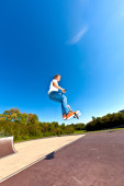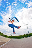 Zdjęcie "dziecko będzie w powietrzu z jego skuter" może być wykorzystywane do celów osobistych i komercyjnych zgodnie z warunkami zakupionej licencji Royalty-free. Obraz jest dostępny do pobrania w jakości wysokiej rozdzielczości do 5760x3840.