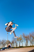 Zdjęcie "dziecko będzie w powietrzu z jego skuter" może być wykorzystywane do celów osobistych i komercyjnych zgodnie z warunkami zakupionej licencji Royalty-free. Obraz jest dostępny do pobrania w jakości wysokiej rozdzielczości do 5760x3840.