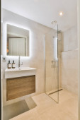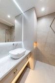 Zdjęcie "Wnętrze łazienki z ceramicznym zlewem i wanną" może być wykorzystywane do celów osobistych i komercyjnych zgodnie z warunkami zakupionej licencji Royalty-free. Obraz jest dostępny do pobrania w jakości wysokiej rozdzielczości do 5760x3840.