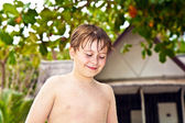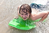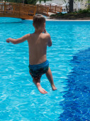 młody chłopak w opony floting cieszy się świeżej wody w basenie