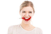 chili pieprz portret młodej kobiety dym czerwony gorący