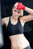 fitness kobieta nastolatek w sportowy strój trzymać ręcznik