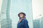 Ładna dziewczyna pozuje na ulicach miasta