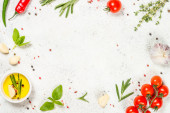 Jedzenie gotowanie tło na białym kamiennym stole.