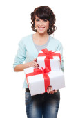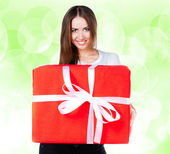 zdjęcie wesołego pomocnika Mikołaja dziewczyna z pudełka prezentów