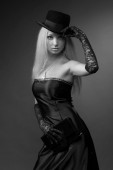 piękne sexy brunetka dziewczyna pozowanie na czarny tło w a wieczór sukienka