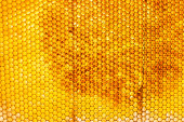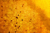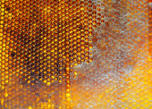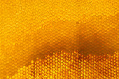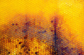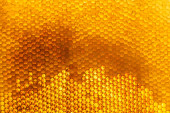 Kropla miodu pszczelego z sześciokątnych plastrów miodu wypełnionych złotym nektarem, plastry miodu kompozycja letnia składająca się z kropli naturalnego miodu, kroplówka na ramce woskowej pszczoły, kropla miodu pszczelego w plastrach miodu