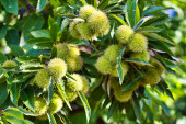 Zdjęcie "kasztan na drzewie przed dojrzewaniem owoców w październiku. Koncepcja jesieni." może być wykorzystywane do celów osobistych i komercyjnych zgodnie z warunkami zakupionej licencji Royalty-free. Obraz jest dostępny do pobrania w jakości wysokiej rozdzielczości do 5760x3840.