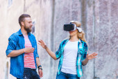 Zdjęcie "Młoda ciężarna kobieta w kasku VR. Przygotowuje się do narodzin dziecka na wirtualnym symulatorze w domu. Technologia rozszerzonej rzeczywistości." może być wykorzystywane do celów osobistych i komercyjnych zgodnie z warunkami zakupionej licencji Royalty-free. Obraz jest dostępny do pobrania w jakości wysokiej rozdzielczości do 5760x3840.