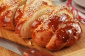 Pyszne bułeczki z sezamem na rustykalne drewniane tła