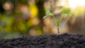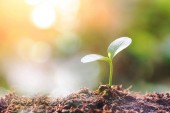 małe drzewo z zielonymi liśćmi Naturalny wzrost i światło słoneczne. Koncepcja zrównoważonego wzrostu roślin.