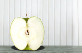 Close up widok cięcia świeże jabłko na czerwonym tle