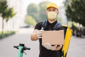 Zdjęcie "Widok z przodu kuriera podchodzącego do budynku klienta i spotykającego młodą białą kobietę." może być wykorzystywane do celów osobistych i komercyjnych zgodnie z warunkami zakupionej licencji Royalty-free. Obraz jest dostępny do pobrania w jakości wysokiej rozdzielczości do 5760x3840.
