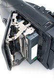Stare zdjęcie aparatu i lampy błyskowej na statywie